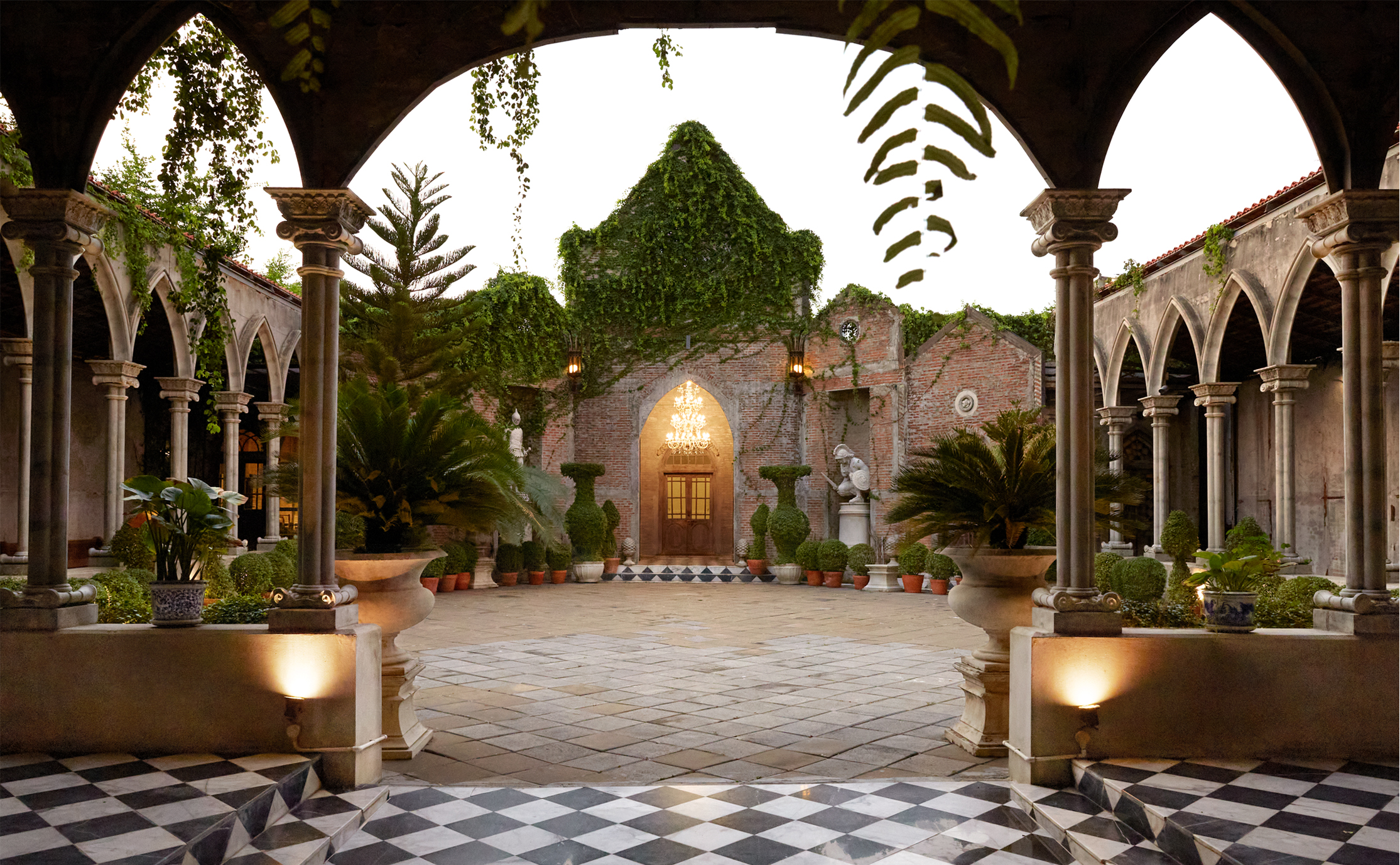 This courtyard represents the royal ceremony in an antique palace where the bride and groom can exchange their vow of love and the starlight could witness your wedding.